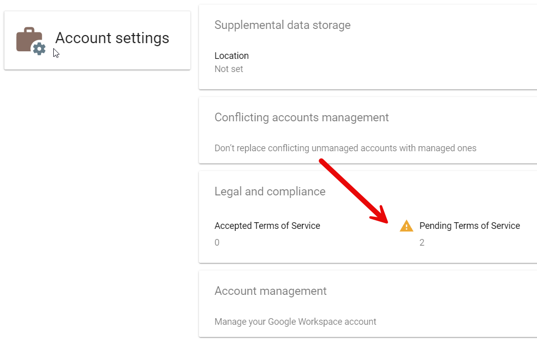 - Scroll down to Legal and compliance and click on the section that says “Pending Terms of Service.”